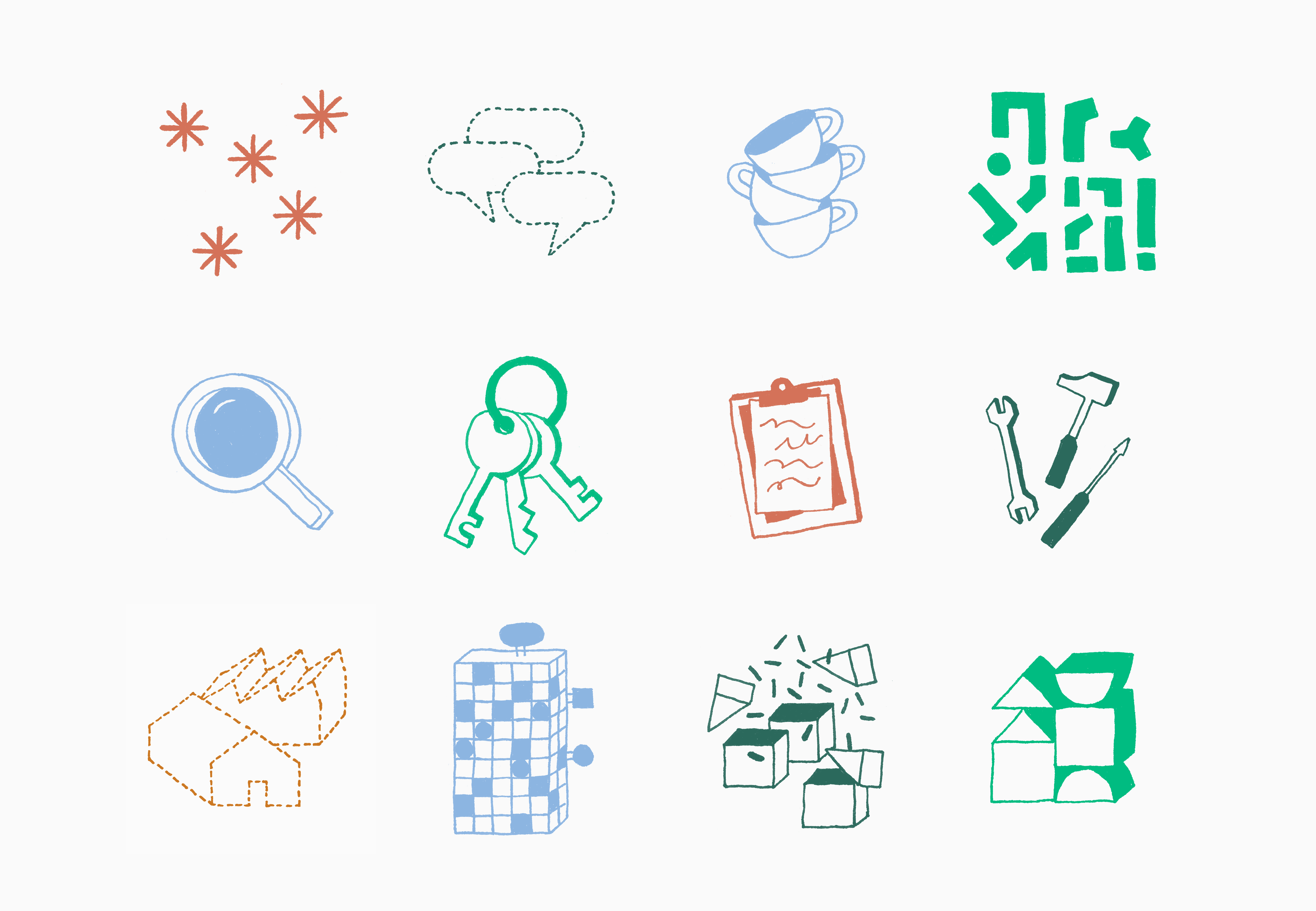 Actualisation de l'identité graphique de l'Agence Intercalaire, coopérative spécialisée dans l'urbanisme transitoire à Toulouse. Conception d'une boîte à outils composée de différents pictogrammes dessinés à la main et réalisation du site web de l'agence : agence-intercalaire.com