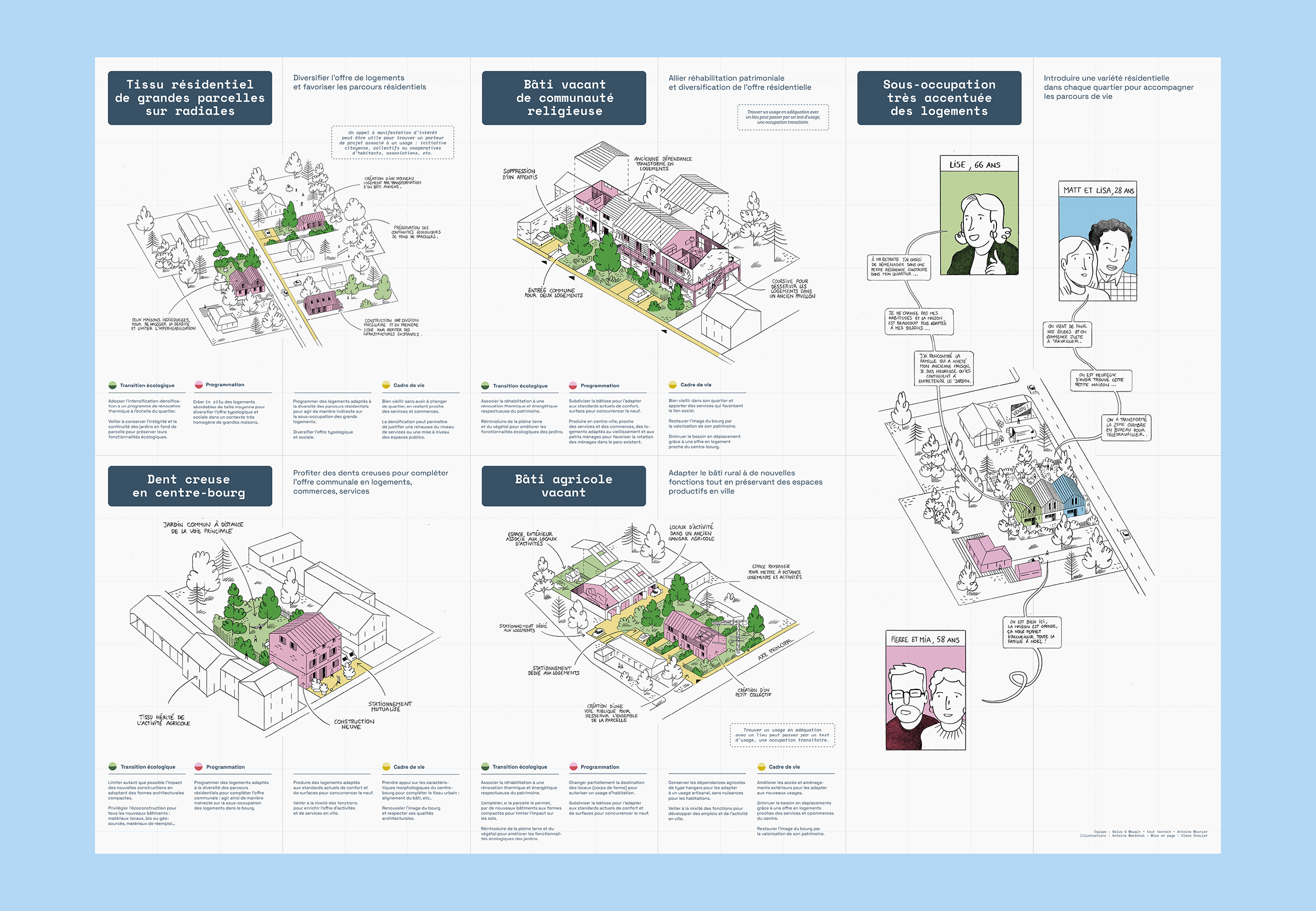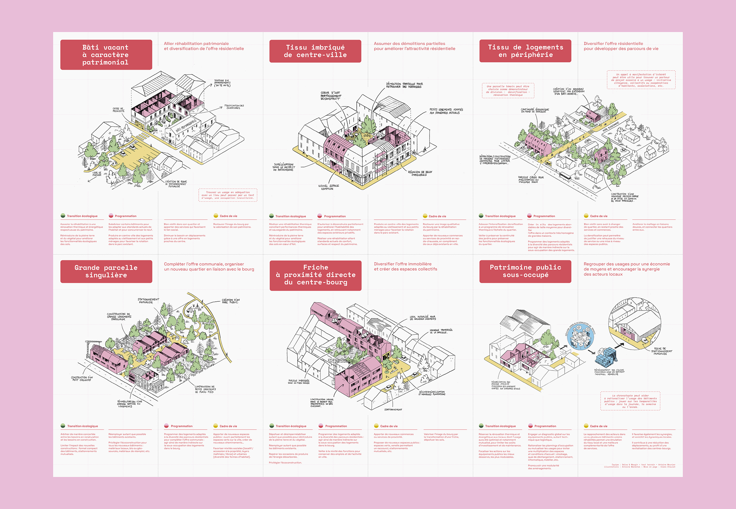 Dans un second temps, des pistes de densification du foncier sans artificialiser, et d’intensification du bâti sans construire, ont été élaboré pour chaque typologie.
